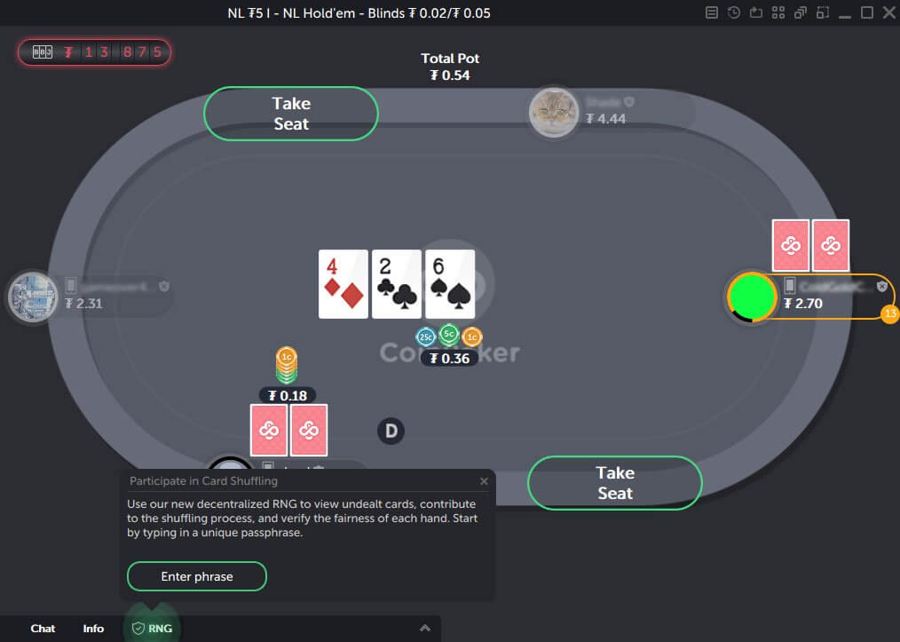CoinPoker uses blockchain technology to ensure security, prevent game manipulation, and provide full transparency.